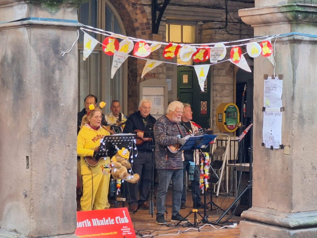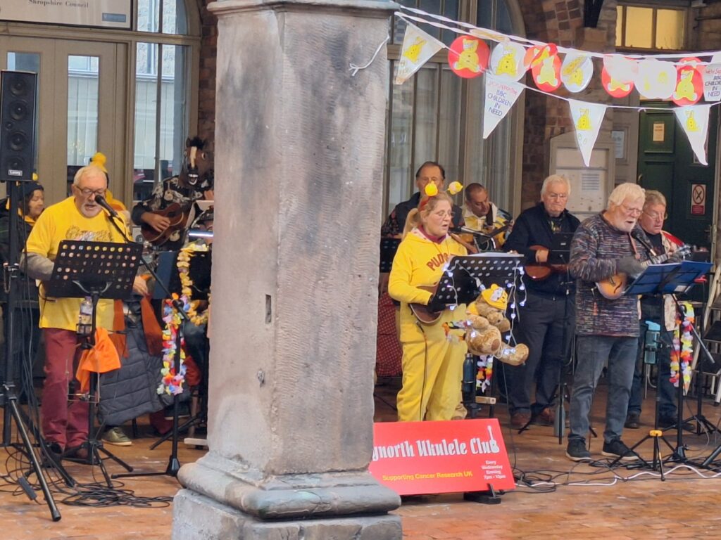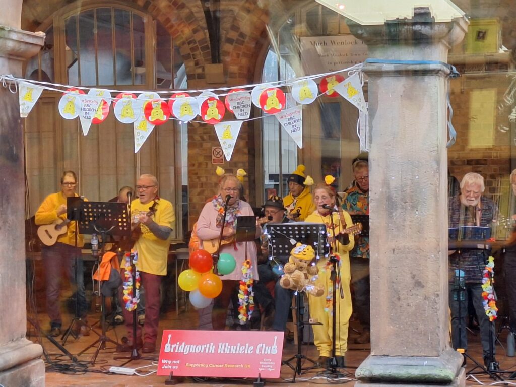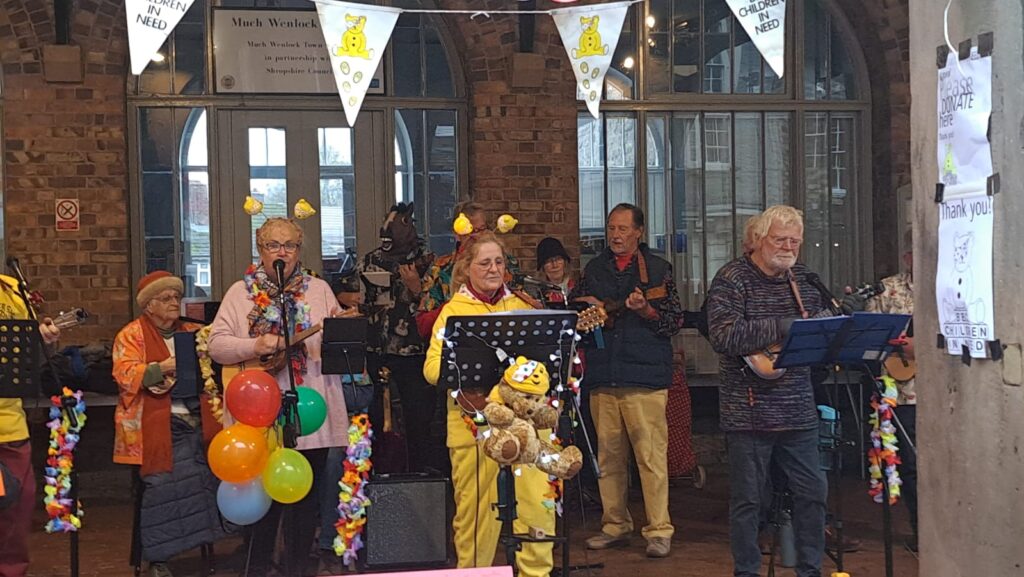 Community spirit at its best! Despite the weather, local talent was out in full force under The Corn Exchange in Much Wenlock today, raising funds for BBC Children in Need A big thank you to David Foster and Lesley Foster, Nick Mitchell on accordion, and Bridgnorth Ukulele Club for playing their hearts out and bringing smiles to everyone passing by. A wonderful reminder of what makes Much Wenlock and the surrounding villages such special places to live ❤️